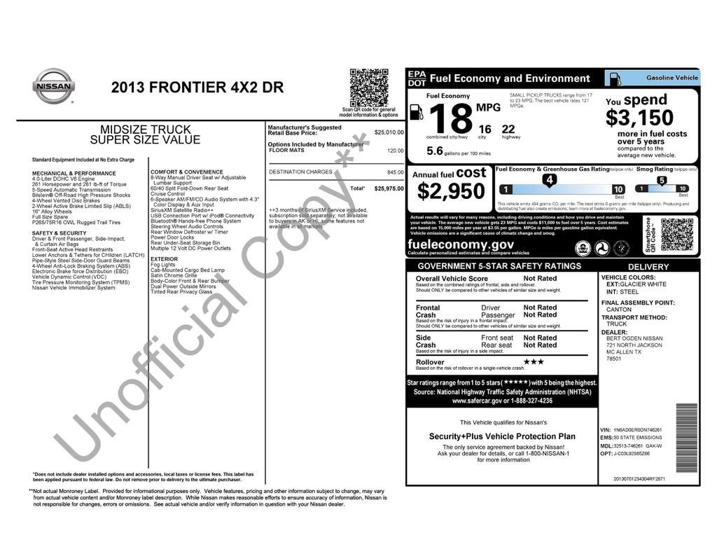 This Frontier Desert Runner is equipped with an impressive array of features that make it a true standout in its class. The powerful V6 engine delivers the performance you need, while the 5-speed automatic transmission with overdrive ensures smooth, efficient power delivery. With its rugged off-road design and capable suspension, this truck is ready to tackle any terrain, whether you're exploring the great outdoors or navigating the urban jungle.