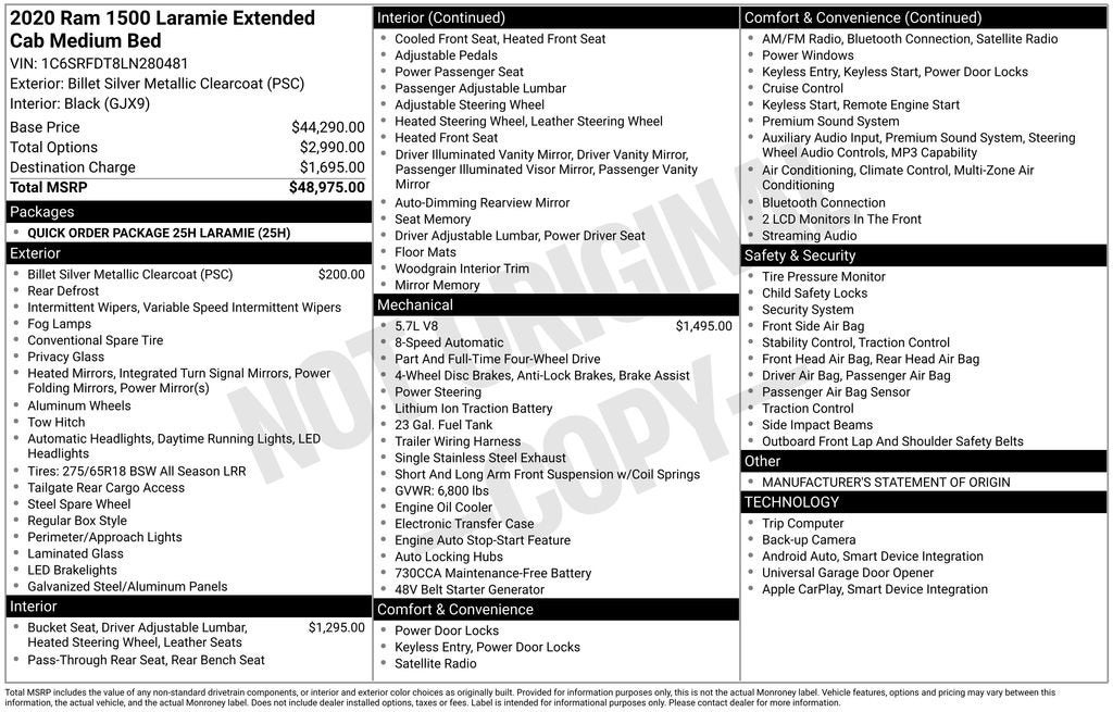 Whether you're hauling heavy loads, navigating rough terrain, or simply enjoying the open road, this 2020 Ram 1500 Laramie is a true standout in the full-size truck segment. Experience the perfect combination of power, capability, and refinement – visit our showroom today to take this exceptional vehicle for a test drive.