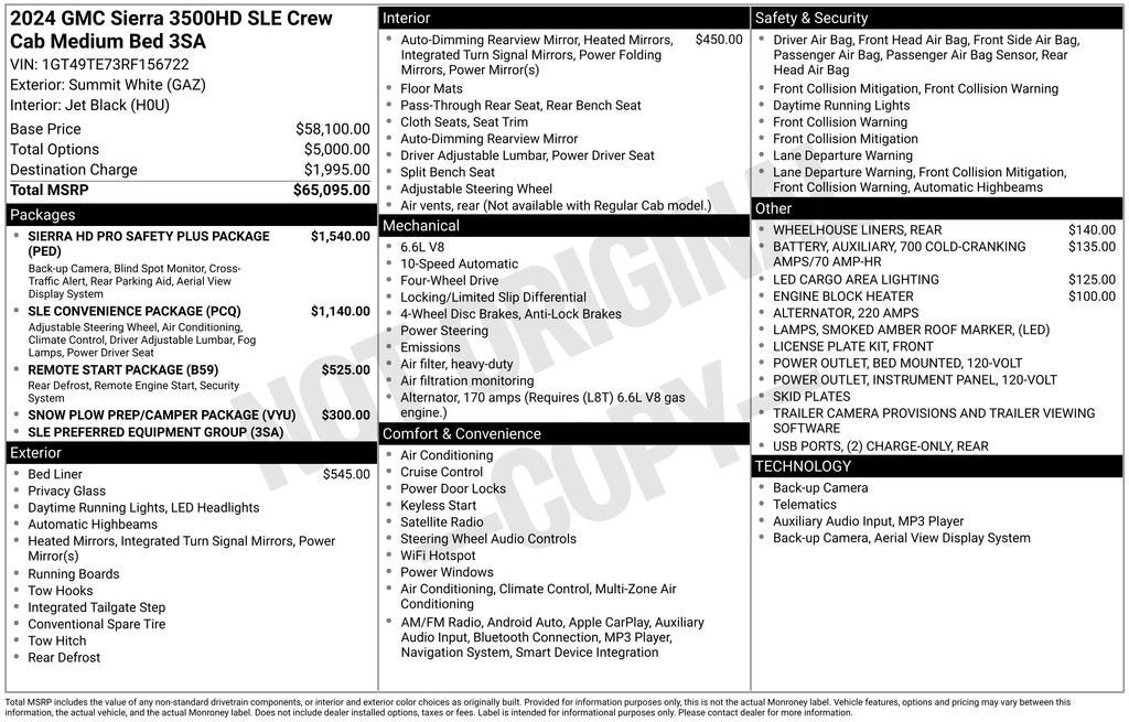 This Sierra 3500HD is equipped with an impressive array of features designed to enhance your driving experience and provide unparalleled convenience. The SLE Convenience Package includes a 120-volt power outlet, dual-zone climate control, and a 10-way power driver's seat with lumbar support. The Sierra HD Pro Safety Plus Package takes safety to the next level with features like Trailer Side Blind Zone Alert, Rear Cross Traffic Alert, and HD Surround Vision.